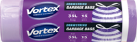 VORTEX Worki na śmieci z taśmą ściągającą HDPE 50x60cm fioletowo białe 35L/15 sztuk